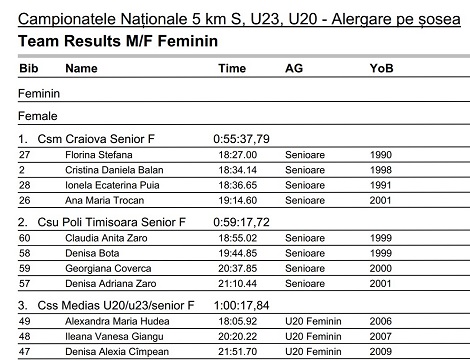 Campionatul Național de Alergare pe Șosea a adus în prim plan și atletele de perspectivă ale municipiului Mediaș, care au obținut la rândul lor rezultate deosebite. Ne referim aici la Vanesa Giangu din clasa a XI-a Instructor Sportiv și la Denisa Cînpean din clasa a X-a Instructor Sportiv. Cele două sportive, împreună cu Alexandra Hudea, au obținut locul al treilea la echipe cu formația CSȘ Mediaș și implicit medaliile de bronz.