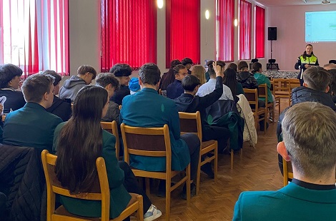 Agenții Biroului Siguranța Școlară Sibiu au adus în atenția liceenilor noștri imagini, filme și aplicații practice, urmate de discuții libere prin care s-a încercat conștientizarea asupra riscurilor ce decurg din teribilism, acțiuni de delincvență juvenilă și implicit din comportamente în afara legii. Pe parcursul acestei întâlniri liceenilor medieșeni prezenți în Sala Festivă le-au fost aplicate chestionare pe tema contravențiilor și a consumului de substanțe halucinogene.